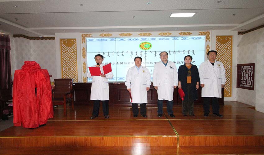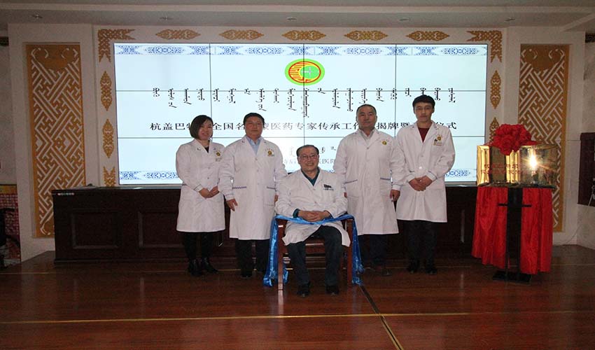 2018年全国名老蒙医杭盖巴特尔传承工作室团队前往乌拉特后旗蒙医医院,进行传承工作室揭牌成立活动,活动结束后在医院进行拜师收徒仪式,在收徒仪式后为蒙医医院工作人员进行了专题讲座,并在医院进行为期两天的坐诊活动。