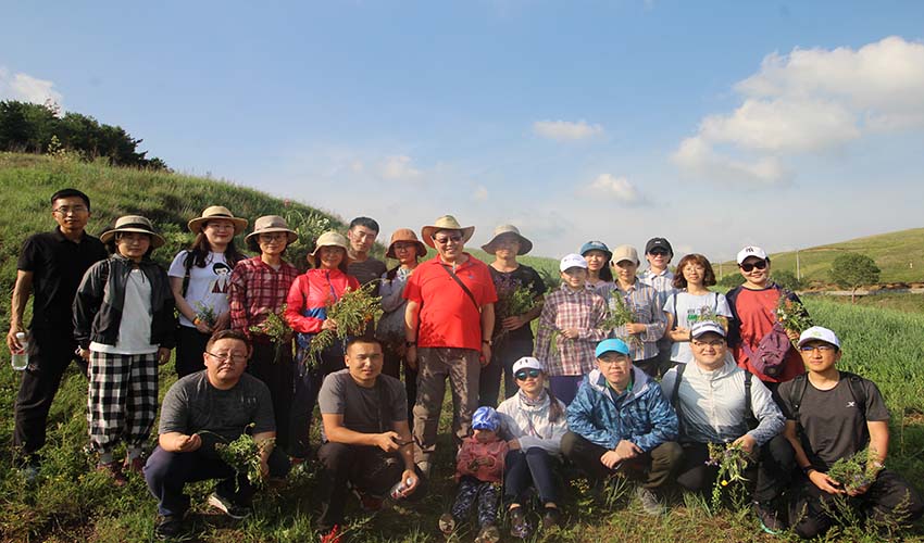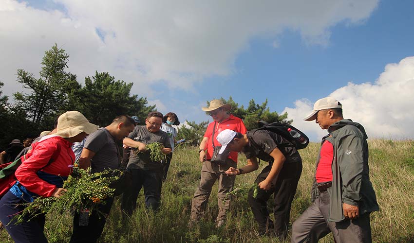 2018年全国名老蒙医杭盖巴特尔传承工作室带各盟市学生,徒弟进行夏季采药活动。