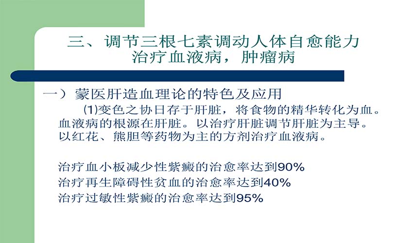 蒙医以平衡三根七素整体观理论调动人体的自愈能力,治疗血液病,肿瘤病的特色